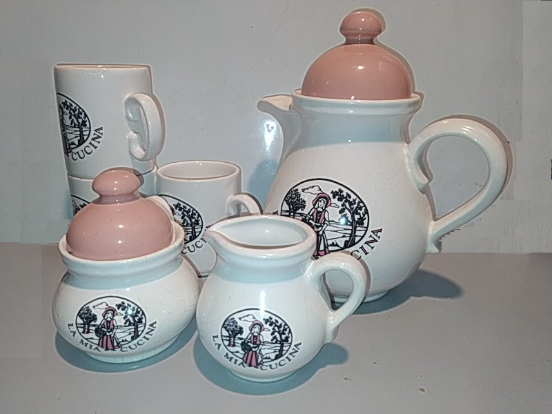 Jarra + azucarero + jarrita de leche + 3 tazas
